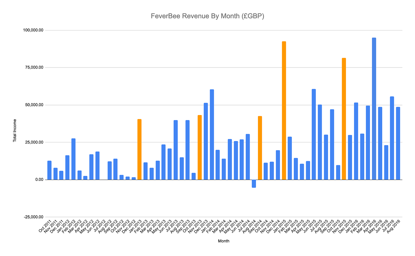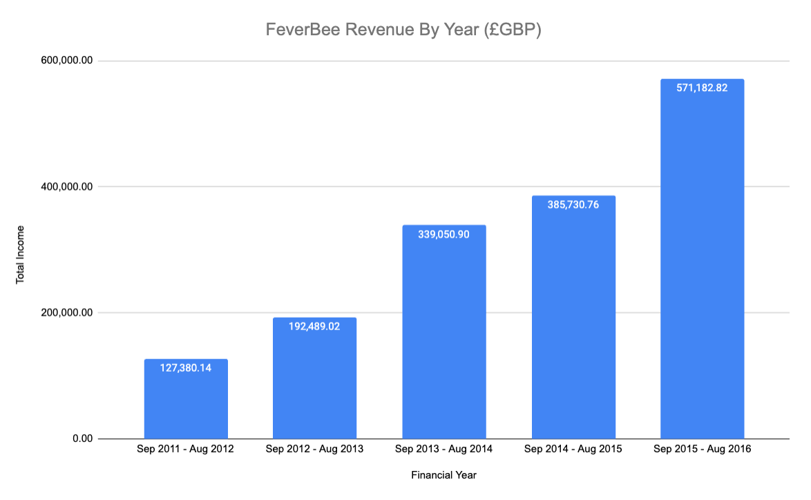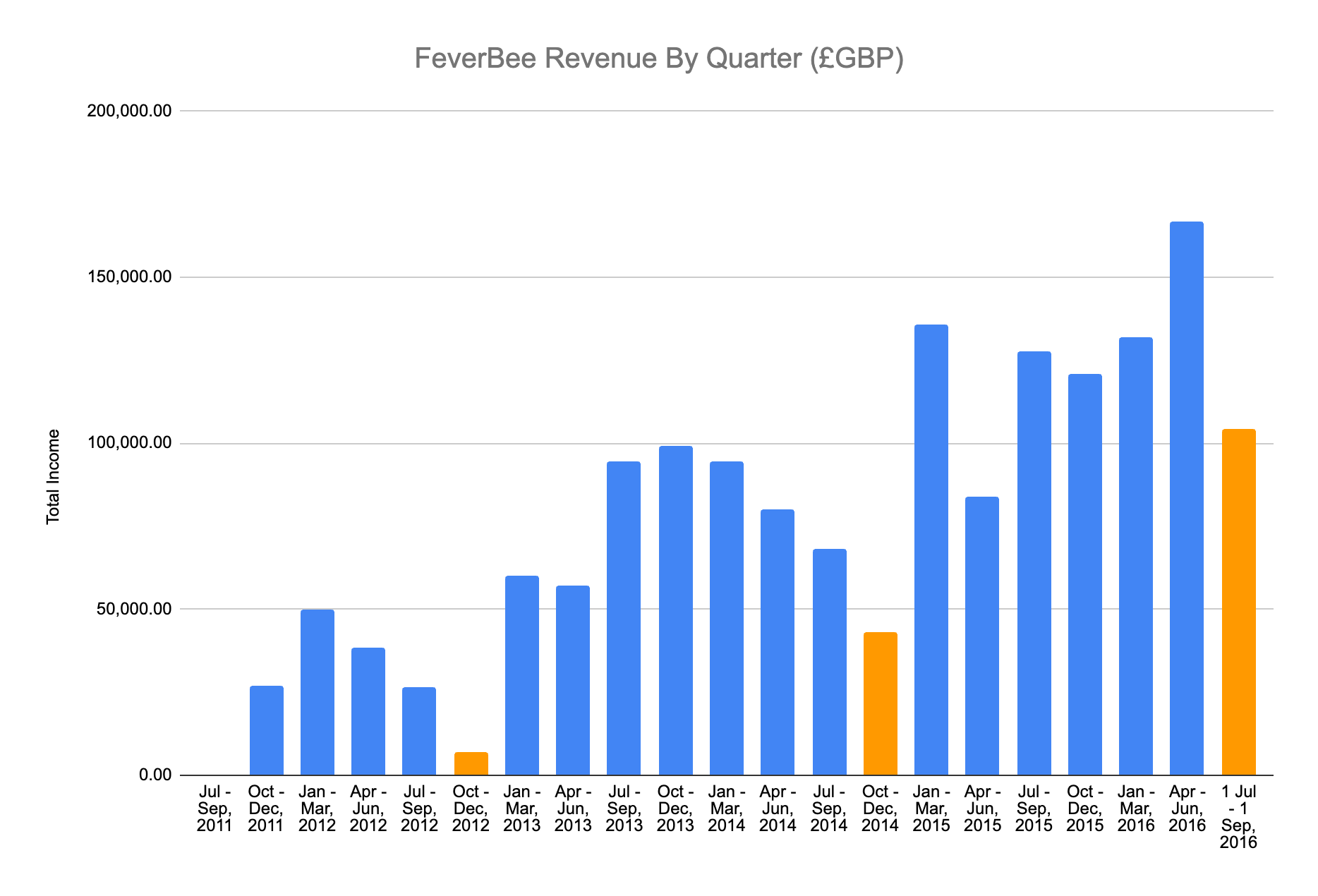 This is very solid growth on the surface. The total over these five years is £1.6m (or approx $2m USD). This is a very respectable number (before expenses - which varied tremendously as we took on staff).