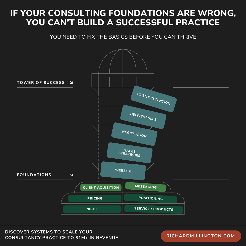 I’d estimate that around 90% of the consultants I’ve coached have made a critical mistake in at least one of these areas. As a result, they’re struggling with fundamental issues that no tactics can resolve.