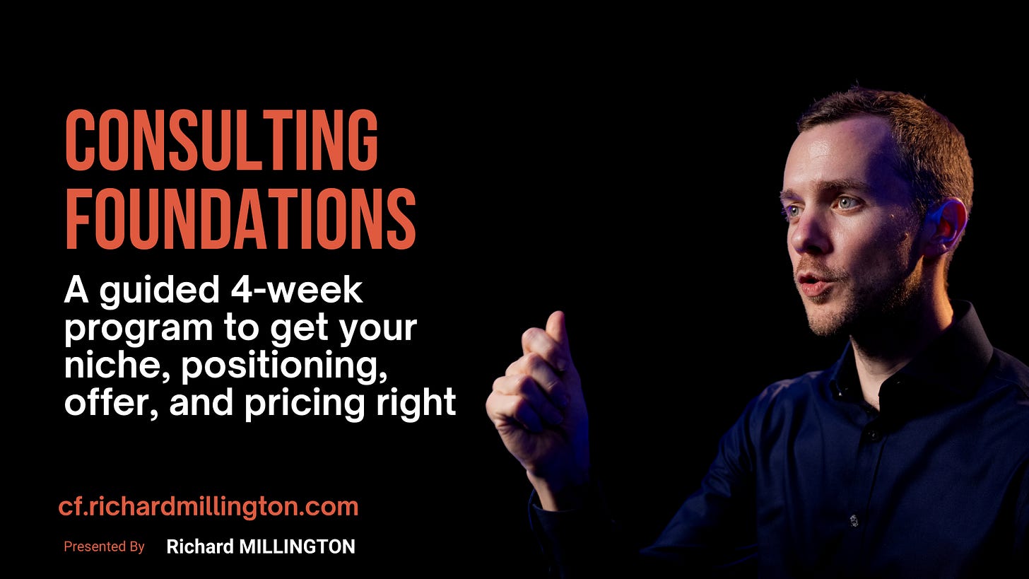 Hi, I’m Rich. Welcome to my weekly newsletter, where I share systems and frameworks for scaling your consulting practice from $0 to $1m+ in revenue.