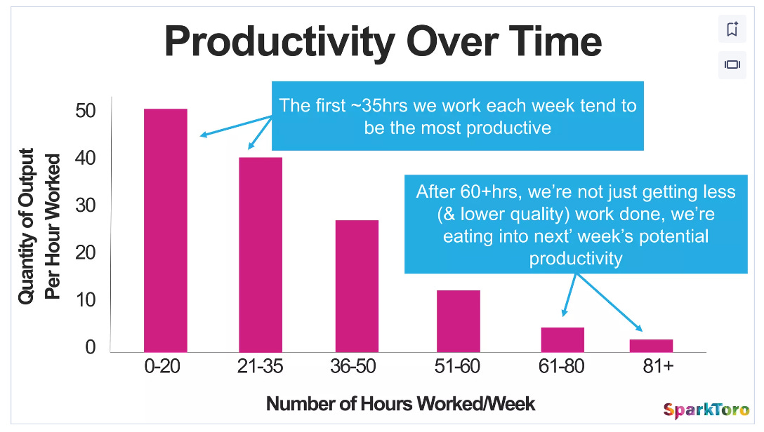 I found early on, people would ask me for my slides - but I knew that the slides without me speaking wouldn’t make sense. Some people tackle this by having two versions of these slides. I tried that too, but then I realised I wasn’t getting enough requests to make it worthwhile (it was too much work). Ultimately, I simply created slides that work in both settings - usually with more text so each slide can explain itself without me. Rand Fishkin is an excellent example of creating slides which work in both settings.