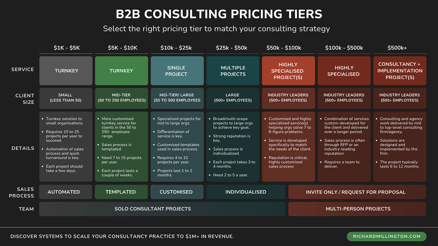 There’s a 7th tier, as you see in the graphic above, but that’s generally outside the range of solo consultants.