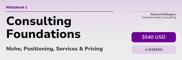 Next month, I’m opening enrolment for my Consulting Foundations program. This is a guided, 4-week cohort-based program to help you get the big decisions right.